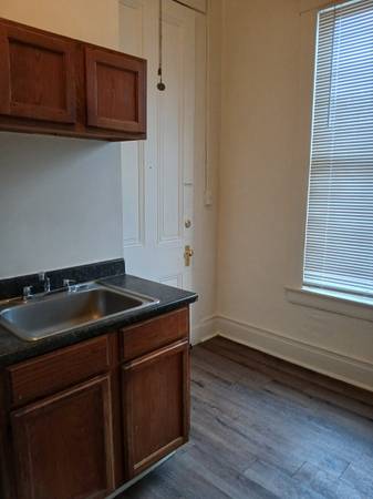 1BR, 1 bath apartment with hardwood, carpet, and laminate flooring. Also includes a stove, fridge, window unit, ceiling fan, and street parking. 2nd-floor unit. Tenant pays a $25 per month water...
