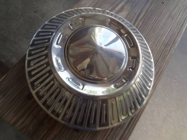 1- 1965 Ford dog dich center cap that is in fair condition. I tried to get a picture of the ding in it but I think a little hammer and dolly work and it would be ready to go
