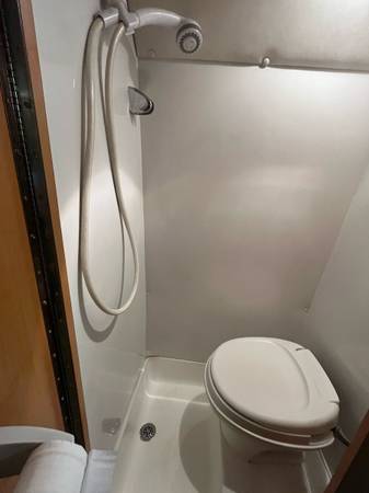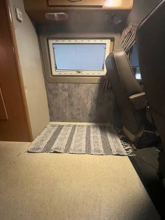 I have replaced the front seats with more comfortable ones, tinted the windows, replaced the outdoor shower, sealed the bathroom floor, moved the water lines for easy draining of the freshwater tank, removed the dinette and replaced with a flip and fold ottoman (not pictured) for extra sleeping and storage and replaced both batteries.