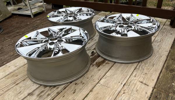 1 Brand new 17 inch chrome rim for sale. Rims don’t have a single scratch. Bolt pattern is 5x100 mm. Center bore is 70.3 mm. Rims are 17x7 with an offset of 45 mm. These can fit several models in Toyota, Pontiac, Dodge, Chrysler, Volkswagen, Scion, Subaru. Few examples are Toyota Corolla, Celica,Yaris, Prius, Scion Tc, Dodge Caravan, Chrysler Sebring, Volkswagen Jetta, Golf, Pontiac Sunfire, Grand AM, Sunbird. 90$ cash per rim. 3 rims are available.Located by Mcneely Lake off Cooper Chapel Road.